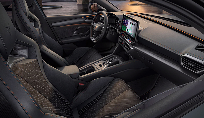 En progressiv model som er modig og vild - indvendigt og udvendigt. Udvendigt ses frontens aggressive design og opsigtsvækkende matrix LED-lygter. Designet til at fremhæve CUPRA Leons dominerende karakter. Indvendigt ses et sofistikeret interiørdesign som er spækket med signaturdetaljer og med sæder som tilbyder ultimativ support.